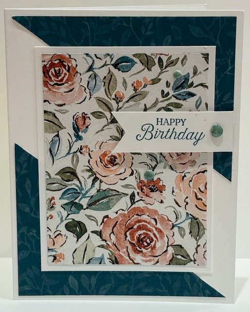 Love this card so much. The Floral Charm Designer Series Paper is so beautiful and with so many different color combinations. This is just one of the combos.